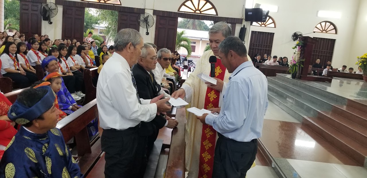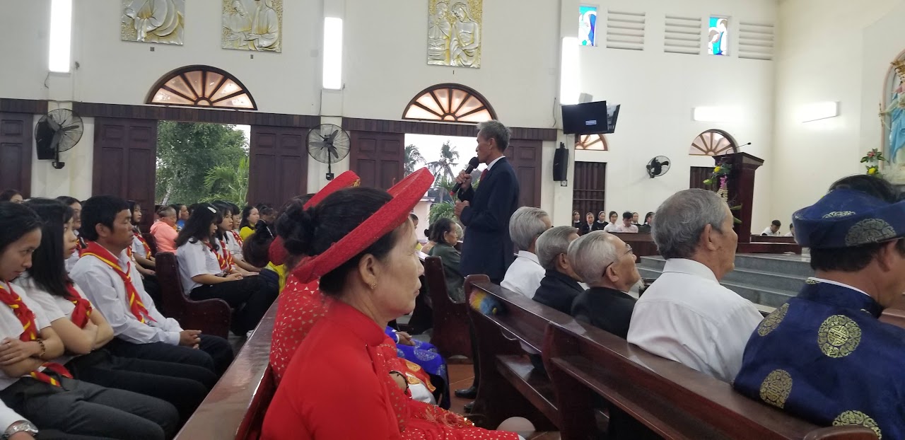 Sau Thánh lễ, Soeus Maria Huỳnh Lê Công Nhi thay lời cho con cháu trong giáo xứ chúc Tết Ông Bà, và Cha xứ lì xì mừng tuổi cho các ông bà cao niên.